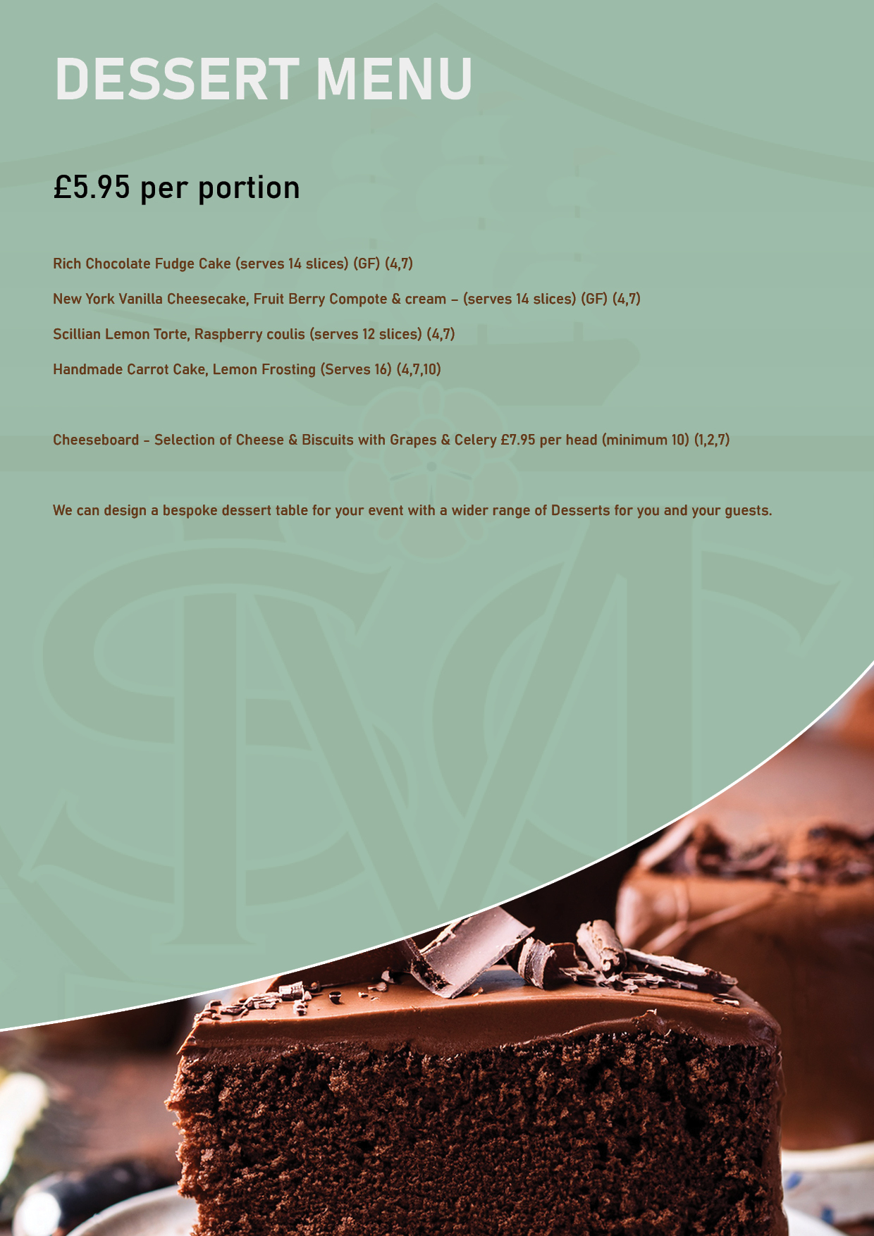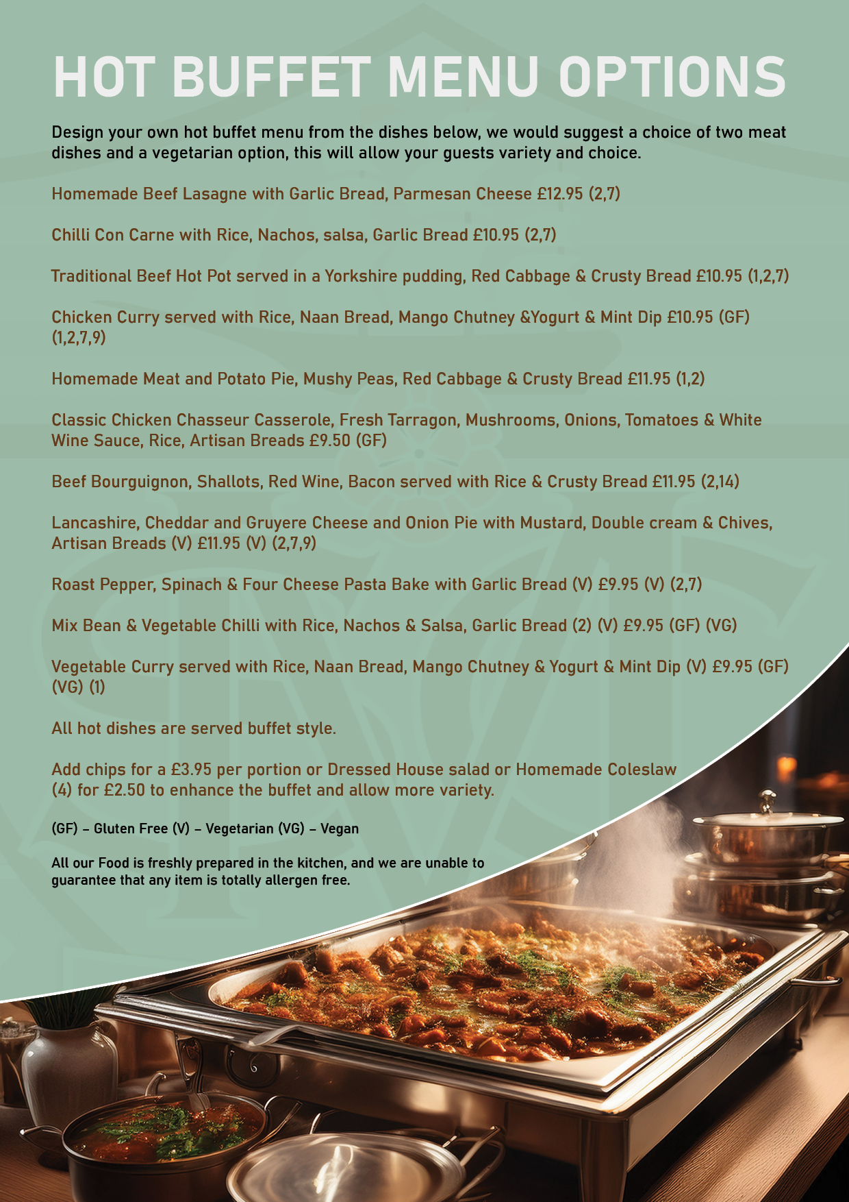 If you have any special requirements or if you would like a bespoke menu please contact Petrina on 07956 640 232 or email petrinalaffey@yahoo.co.uk for a consultation.