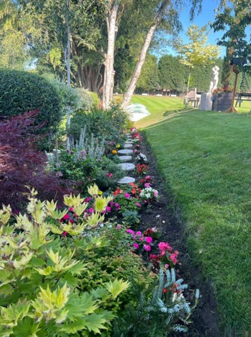 In 2021 much landscaping took place resulting in the creation of the Willow Patio and Mound, both incorporating patio areas with much garden furniture, and many trees and flower beds. Effectively with much hard work and investment we have created a very large garden with a massive lawn.