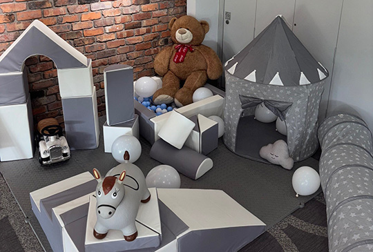 The Soft Play Package includes mini ball pit, giant teddy, tent, tunnel and soft play bricks, all on a soft safety mat. Perfect for christenings, birthdays or baby showers etc.