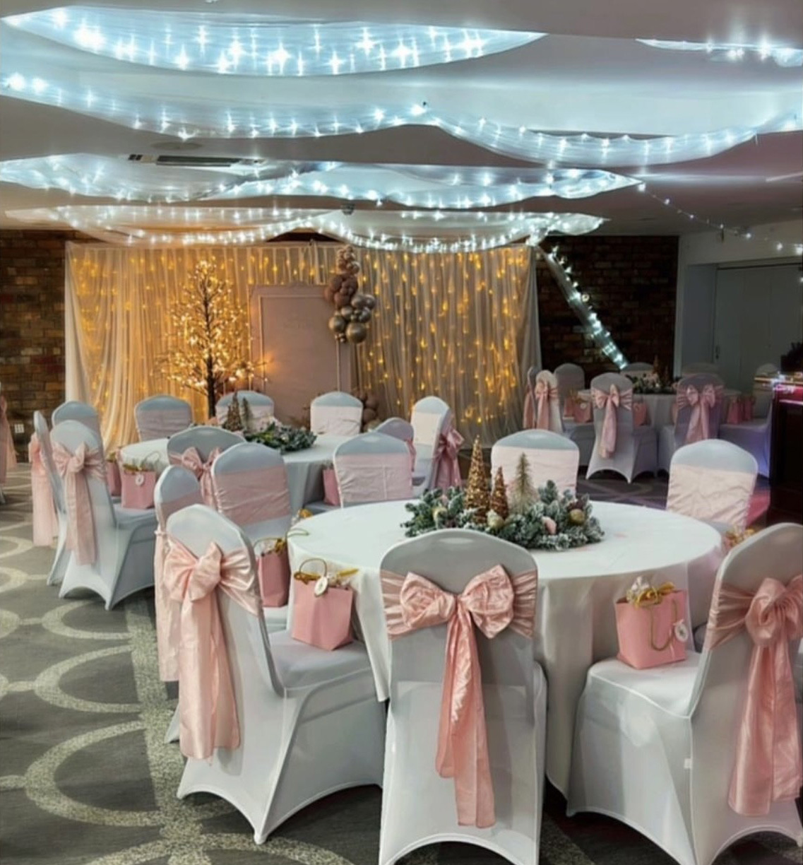 Our Wedding Package includes everything you need to make your dream day look and feel amazing. From chair covers to centrepieces, Contact Danielle on 07845 574865 to discuss your plans.